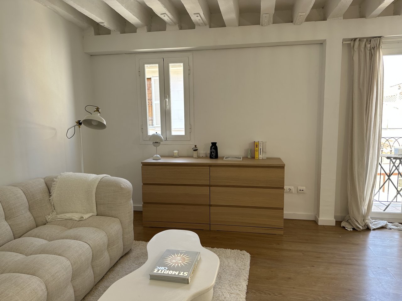 Immediately after entering, a bright, open living area with access to a small balcony awaits you. From here you can fully enjoy the flair of the old town of La Lonja.