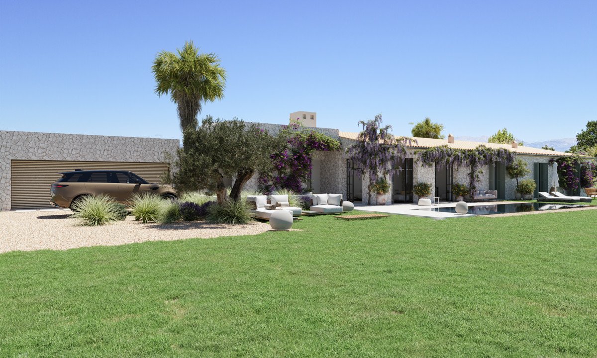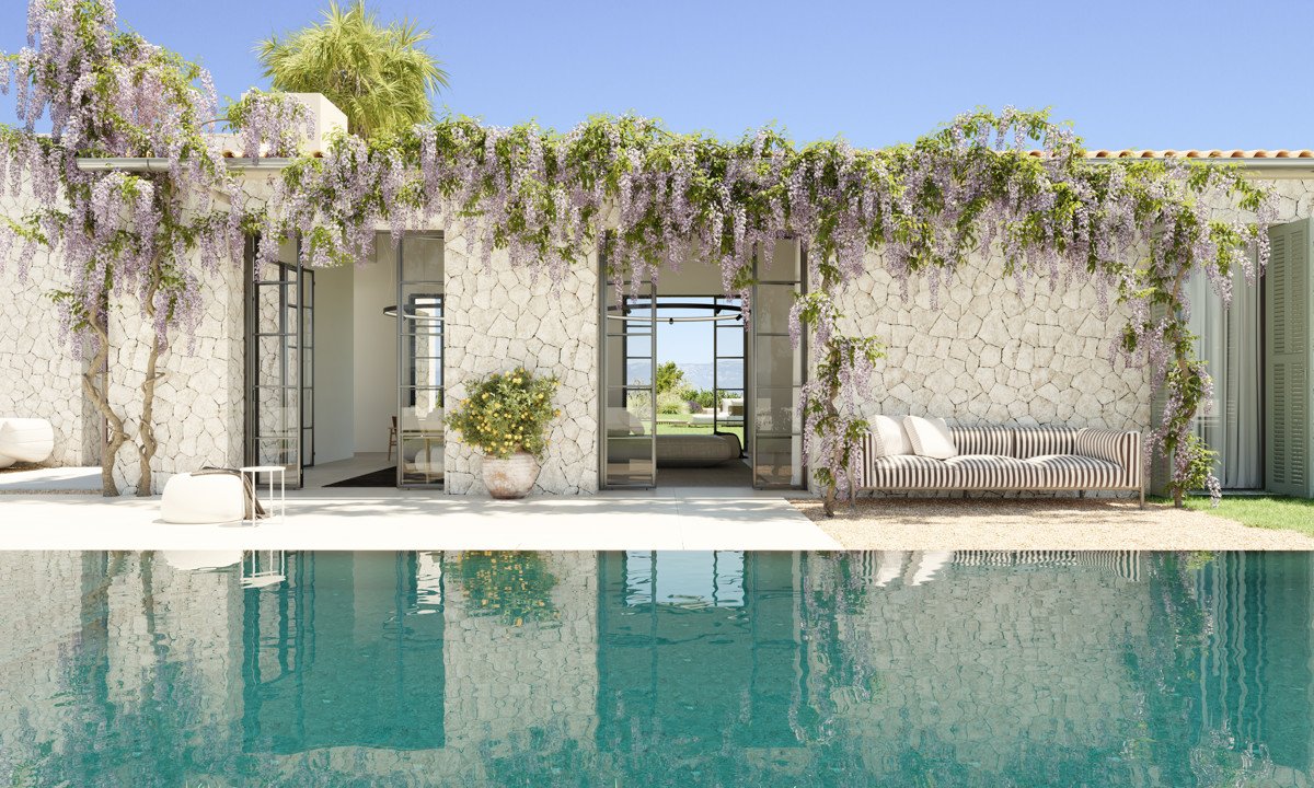 Este proyecto de finca con fantásticas vistas panorámicas a la Sierra de Tramuntana ofrece además de mucha privacidad una fantástica zona de terraza con una gran piscina (10,20 x 3,40 m).