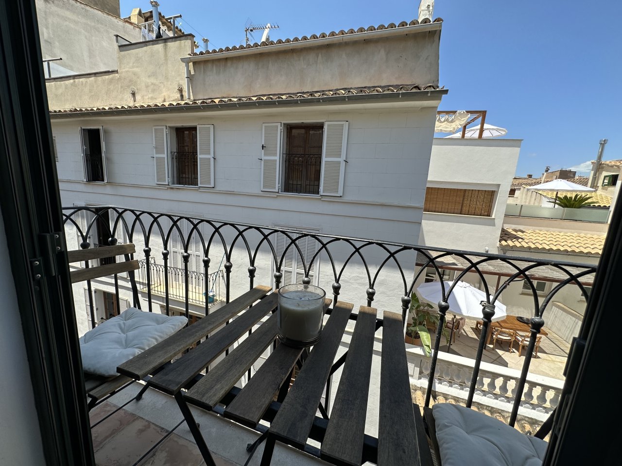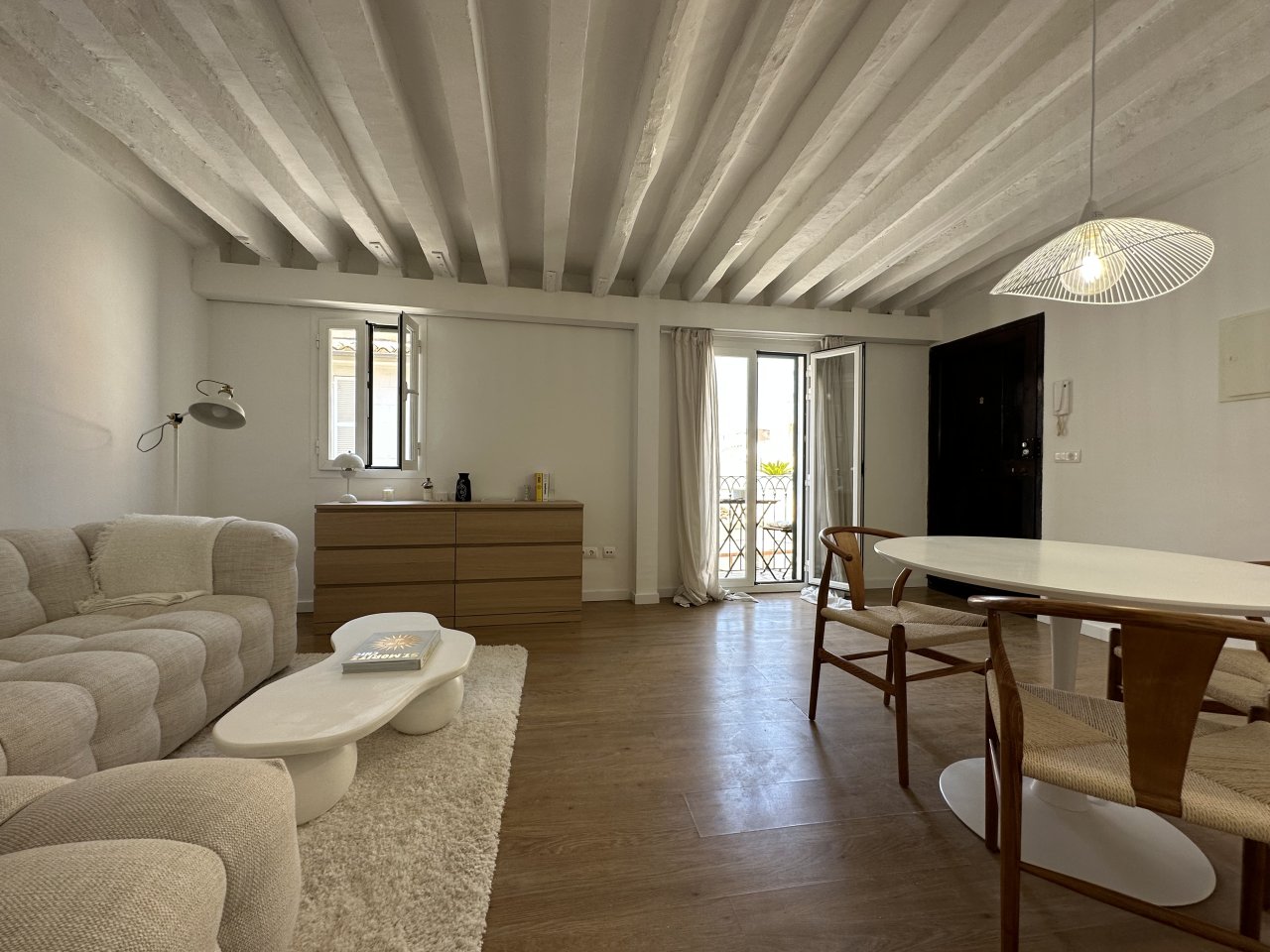 Dès l’entrée, un espace de vie ouvert et lumineux vous attend avec un accès à un petit balcon. De là, vous pourrez profiter pleinement de l’ambiance de la vieille ville de La Lonja.