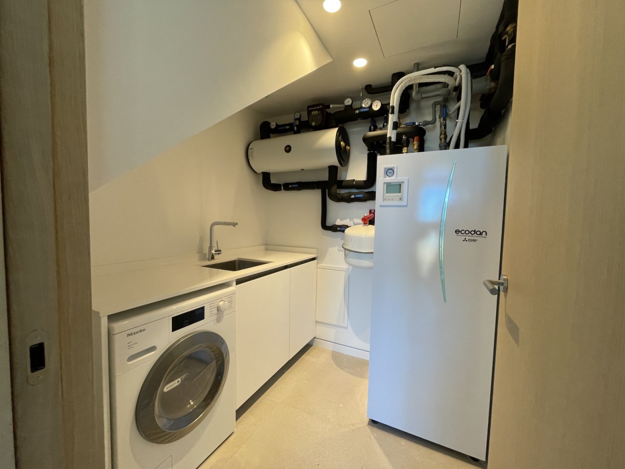 Deux places de parking et un débarras complètent ce penthouse particulier, qui a été construit avec beaucoup de goût et de qualité, comme en témoigne son design extérieur extravagant, avec ses panneaux en pin traités thermiquement, qui peuvent être actionnés automatiquement et qui offrent une ombre agréable.