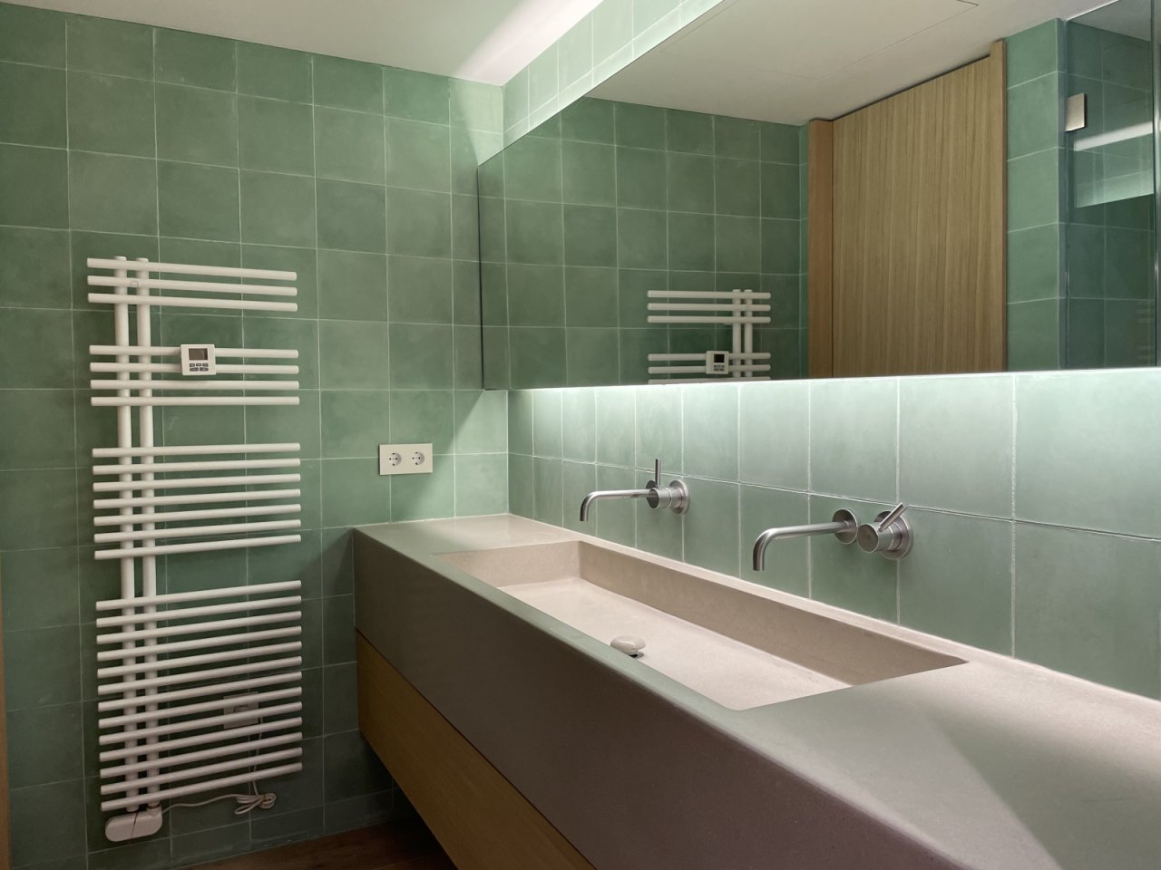 Un étage en dessous de l’entrée se trouvent les chambres à coucher, chacune avec une salle de bain en suite. La chambre principale dispose en outre d'un grand dressing.